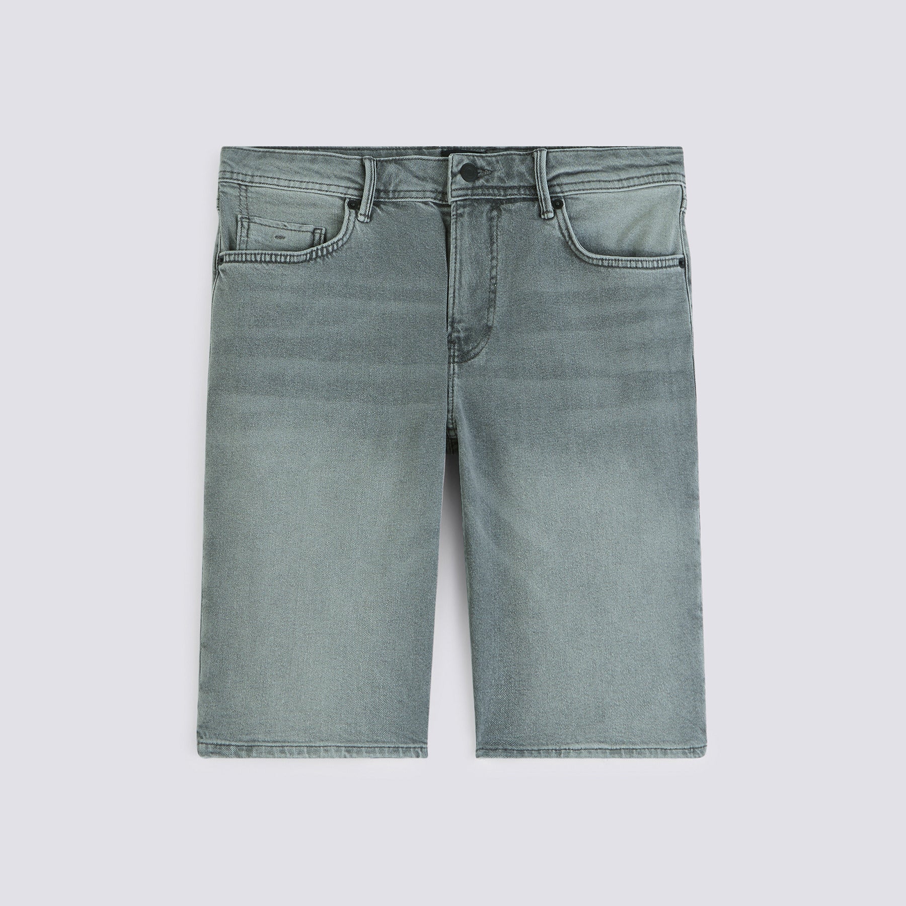 Avec sa coupe 5 poches toujours efficace, ce bermuda homme en denim gris assure un look casual sans fautes et sans reproches pour une histoire qui dure : la toile se plie à votre vie, se patine et s'assouplit joliment avec le temps . Fermeture par bouton et glissière avec passepoil intérieur contrasté. Surpiqûre contrastée à l'intérieur de la ceinture.