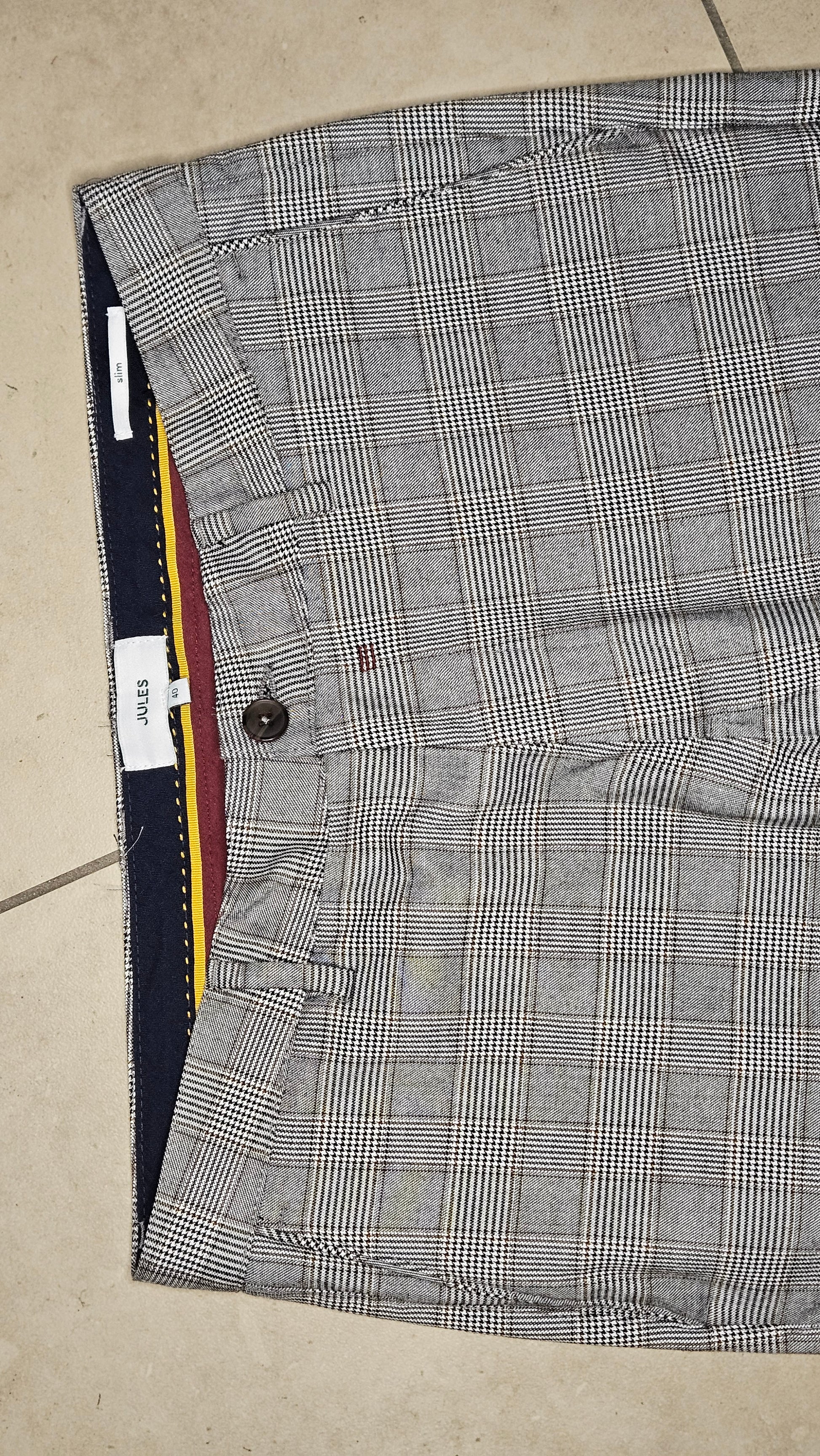 Ce chino à carreaux, avec ses poches italiennes avant et ses 2 poches passepoilées arrière, possède une fermeture zippée. Sa coupe est slim, pour un porté près du corps.Le mannequin mesure 1m86 et porte une taille 40.