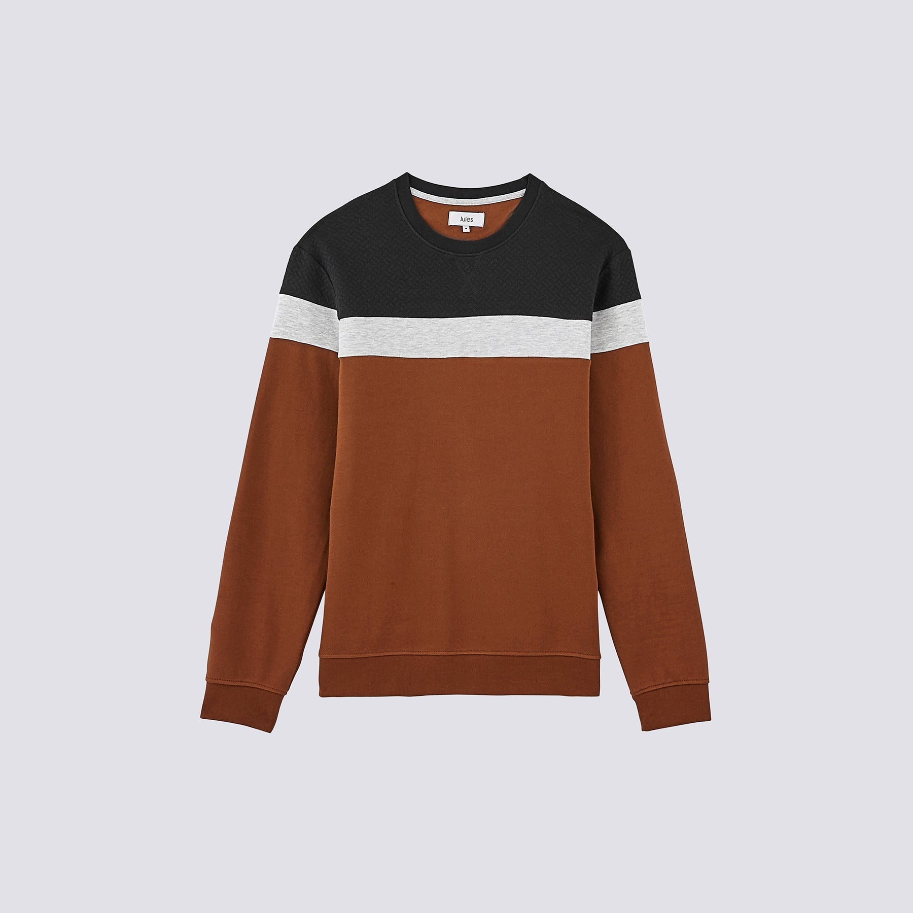 Ce sweat homme à col rond prend forme dans un molleton gratté confortable et doux. Il mise sur un style casual et contemporain avec un motif color block et une maille fantaisie.