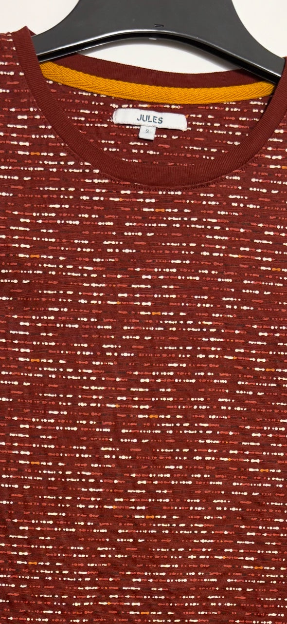 Graphique, confortable et stylé, ce tee-shirt homme à col rond affiche un motif effet rayé par des points contrastés colorés sur fond rouge. Manches courtes. Coupe regular.Le mannequin mesure 1m92 et porte une taille M.