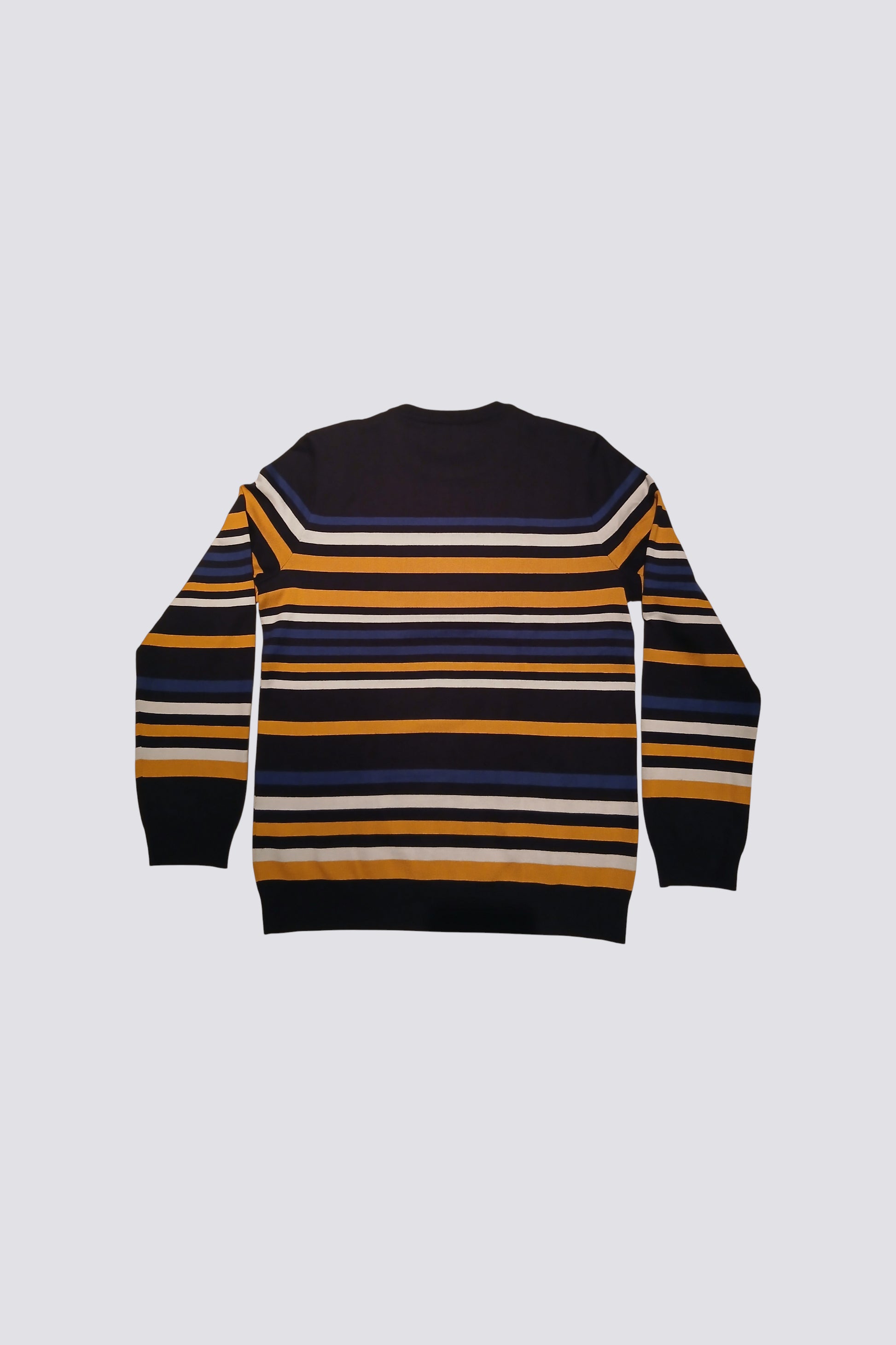 Pull col rond à rayures finitions bord c